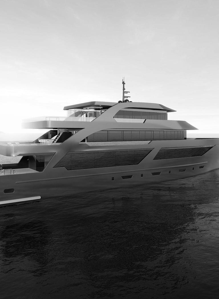 We design exteriors that enhance the identity of each vessel, combining elegant lines with functional solutions. The result is a striking and sophisticated presence on the water